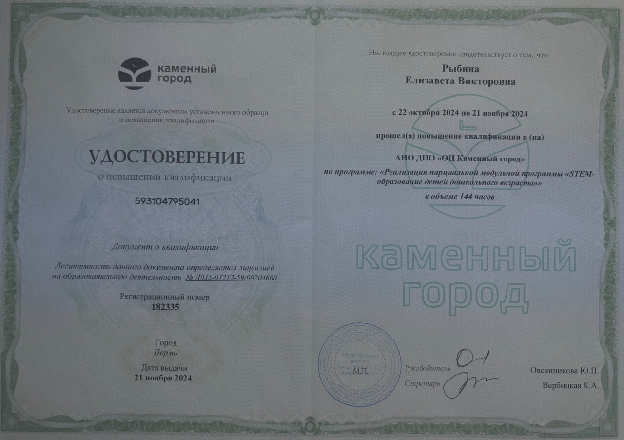 "Реализация парциальной модульной программы "STEM-образование детей дошкольного возраста""